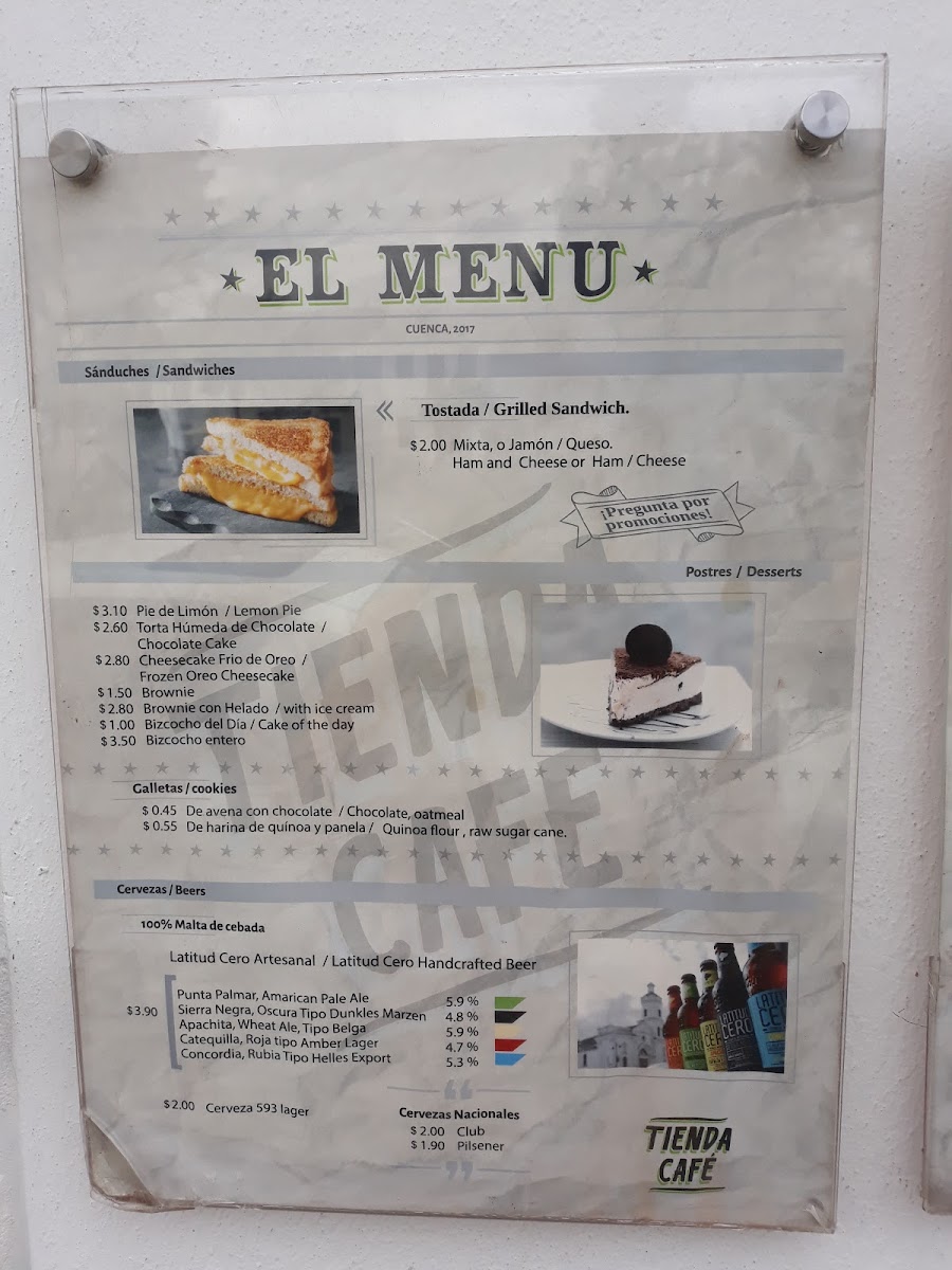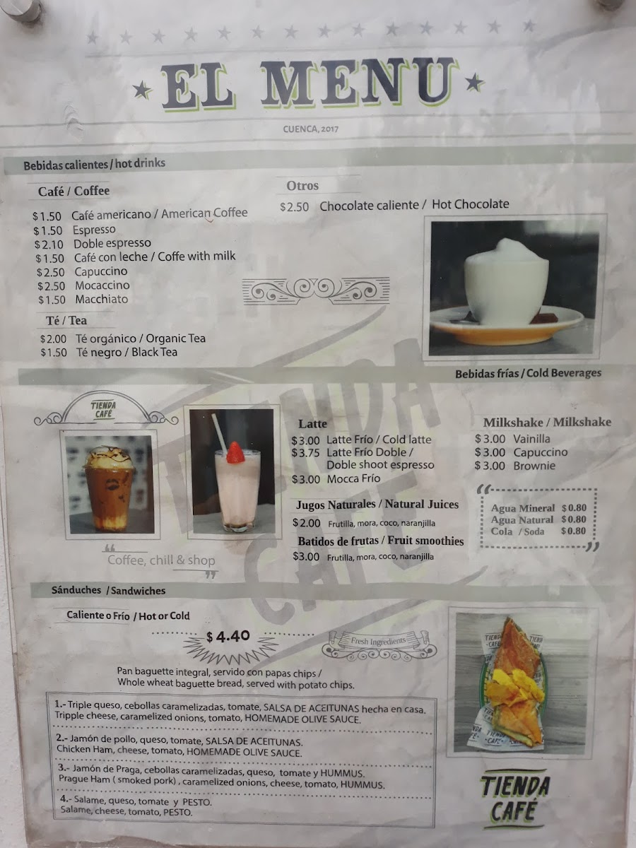 Tienda Cafe Menu